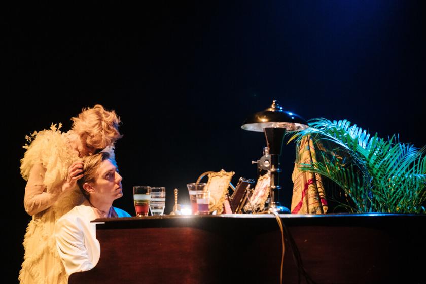 Nicky Lancaster is Coward’s avatar, a young jazz composer who we must believe hides the socially fatal secret of his sexuality under a false engagement to one “Bunty”, and copes with the stress by taking cocaine. His mother, the floridly named Florence Lancaster – who is at one point unkindly characterised as “elderly” but is probably no more than 50 – is equally at social risk for her addiction to quick affairs with young men, but has the money and society status to get away with it for the time being. Neither premise stands up 99 years later, but director Daniel Raggett has attempted to haul and tighten the whole thing into today’s style of speech and behaviour as if to repoint its relevance.