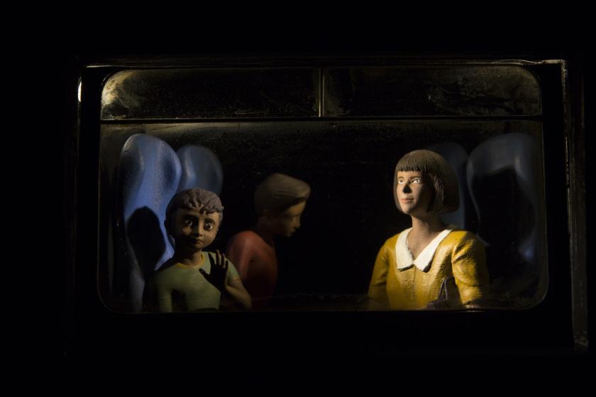 In a recent artsdesk interview Candice Edmunds, one of Flight’s creators, described the experience thus: “You arrive and are led individually to a booth where you’re seated with a set of headphones on your head. You’re sitting in front of a large carousal and set into it are 200 diorama, 3D model boxes. As the story unfolds through the headphones the carousel revolves and lights up to tell the story, so it’s almost like looking at a 3D graphic novel. It lasts 45-50 minutes and you are one of 25 people sat around the carousel. As your story comes to an end you are taken out of your booth and someone else is sat in there so the story can start for them. It’s a revolving experience of time slots across the day as each audience is gradually taken out, and it never stops. The story goes round and round; there’s something a bit Victorian peep show about the whole thing.”