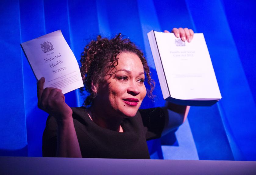 The NHS is us. Early in this new verbatim play about the National Health Service, one of the characters says that when a sample of Britons was recently asked what the most important institution in the UK is, six per cent said the monarchy, 12 per cent said parliament, but a whopping 48 per cent said the NHS. It is central to our national identity, and arguments about its condition are a vital part of the general election campaign – which explains why the Royal Court has programmed this show now.