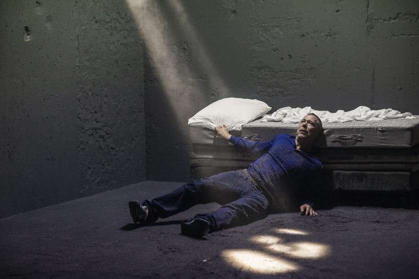A bare interior with tarnished walls, a single bed, and an oxygen tube. The stage seems to have been set for a Beckett play, but the figure who comes to inhabit this dejected enclosure for 90 minutes is grounded in a far different world.