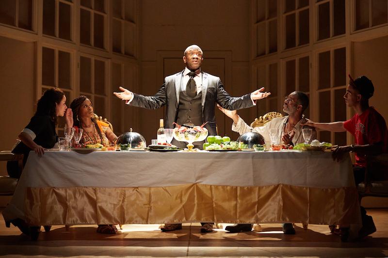 Yet the characterisation is too thin to attach any emotional import to the frantic story developments, and Gardley’s targets too soft. The most satisfying moments operate as detached, heightened sketches, notably the mighty Clarke facing off against Andoh’s animalistic Peaches: two badass women revelling in their different types of empowerment. Clarke also leads the toe-tapping gospel interludes (pictured above), which have a much better hit rate than the comedy. Msamati is a persuasively devious Toof, switching between thundering testifying and sly manipulation, and Angela Wynter is suitably intimidating as Organdy’s intolerant mother.