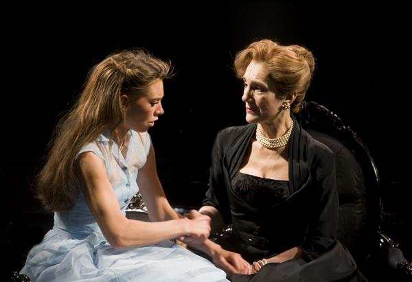 Marianne Elliott’s production is set in 1950s Italy, a rather predictable and not very interesting choice, with Leantio’s mother dressed as a southern peasant while the aristocratic women sport swishing dresses and sip cocktails. For clarity, Bianca is dressed in white and the fool is clownesque. As you’d expect, Livia, at all times, looks terrific. But the huge set, designed by Lez Brotherston, is hard with marble, lit by huge chandeliers, and heavy with a sense of oppression. References to Italy's fascistic past fail to add to the play's topicality.