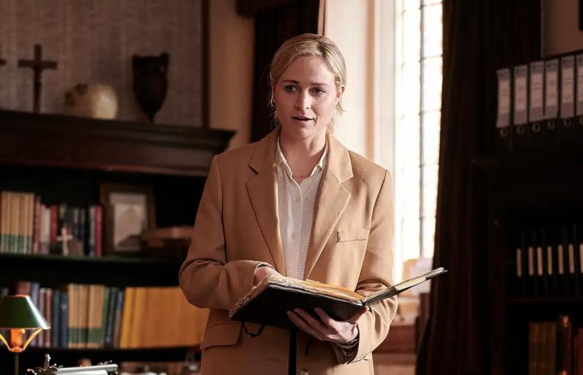 Sion Daniel-Young’s portrayal of Stagg suggests an unbalanced and insecure individual whose life has been sorely lacking in meaningful relationships, whether romantic or parental. However, he certainly doesn’t look any less “normal” than Professor Britton, played with an insidious creepiness by Marsan which might almost suggest the Prof himself had an attic full of noxious secrets. In the scene where Byrne visited him in his study for the first time, Britton even managed to make the act of pouring her a cup of tea resemble a form of sadistic abuse. DI Keith Pedder (Harry Treadaway), running the Nickell investigation, has the ostentatious moustache and Brylcreemed hair of a resentful bank clerk bearing a grudge.