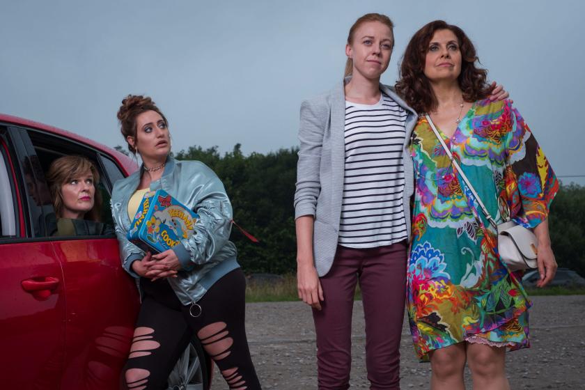 Double-family comedy: from left, Siobhan Finneran, Lauren Socha, Ellie White and Rebecca Front
