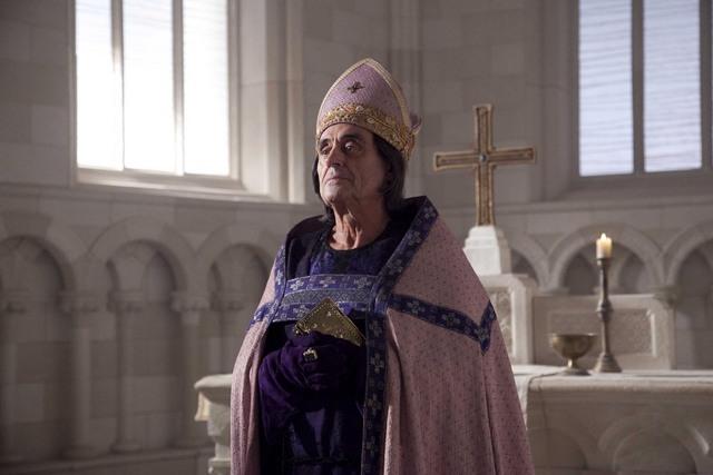 McShane plays an archbish operating on the very outer reaches of uni-dimensional sniggering-behind-the-sleeves-of-his-chasuble wickedness. Contracted since time immemorial to play hoods and heavies, McShane always gives good spiv: he can phone through a study in charmlessness as easily as the next man. Word to the wise, when McShane gets cast as someone with the faintest glimmer of a beating heart, it’ll be very early April, some time fairly adjacent to the end of the world as we know it. But here he’s totally got the tone right. Handed a script with a high-heaven reek of bombast and humourlessness, McShane is the only one who seems to have fully grasped that The Pillars of the Earth has the moral complexity of The Wacky Races. His eyebrow work is dastardly to a tee, the detail on the lip curls wrought with filigree skill, and he laces every threat with award-winningly camp menace.