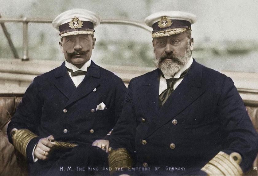 hat little light relief was on offer came from accounts of Kaiser Wilhelm's visits to the Cowes sailing week (his attitude towards Britain kept veering berserkly from loathing to fawning groupiedom). Loud, aggressive and cursed with a grossly infantile sense of humour, Wilhelm pissed off just about everybody, and each year at Cowes he would crank up the personal arms race between himself and Bertie, now Edward VII - he'd bring a bigger, flashier yacht, or come with a retinue of German warships which fired their guns at uncouthly inappropriate moments, or arrange for Zeppelins to fly overhead. It began to sound worryingy like a tale of sound and fury, told by an idiot.