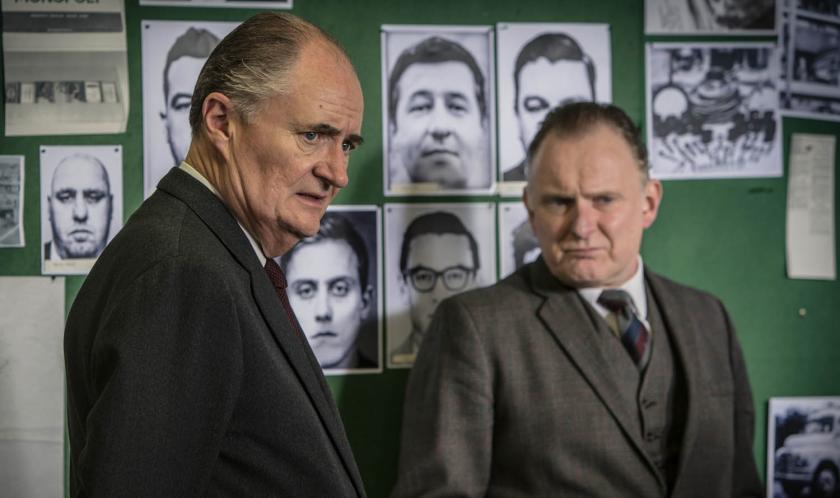 Alongside Broadbent and Evans, the producers were able to assemble an impressive cast including Robert Glenister, Nick Moran, James Fox and Tim Pigott-Smith. Both films have a separate director, with Julian Jarrold telling the story from the robbers’ perspective and James Strong at the helm for the coppers (the train robbers in court, above).