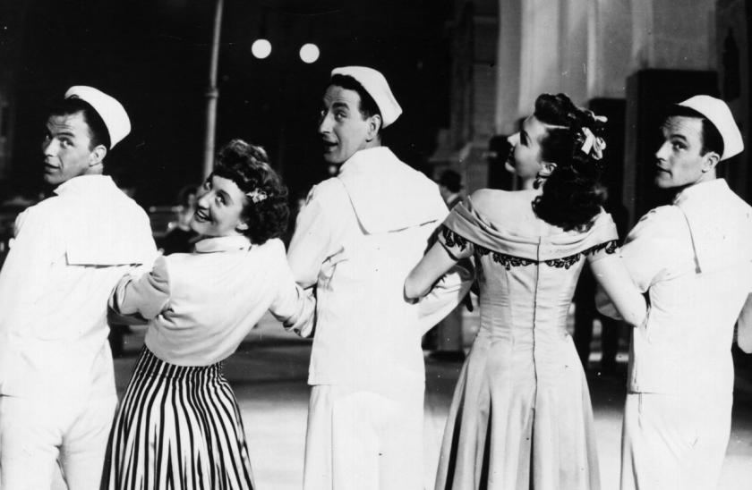 Back in America, the young Judy Garland starred in Metro Goldwyn Mayer’s Meet Me in St Louis, 1944, a family musical in glorious technicolour. The star to come who led the movie musical revolution was a young dancer from Pittsburgh, Gene Kelly; his charming widow Patricia Ward Kelly told us that Kelly went back to sports, which he loved, to find the right moves for the American male. Cover Girl from 1944 was his breakthrough movie, and dance told the story. Kelly duetted with himself using breakthrough techniques, as a vintage interview demonstrated: you just had to be an obsessive perfectionist and an original genius. 1949’s On the Town (main picture) took the action out from the studio at Kelly’s insistence, onto the streets of New York, even though it was tricky protecting Frank Sinatra from the crowds. (Pictured below, Neil Brand on the New York skyline).