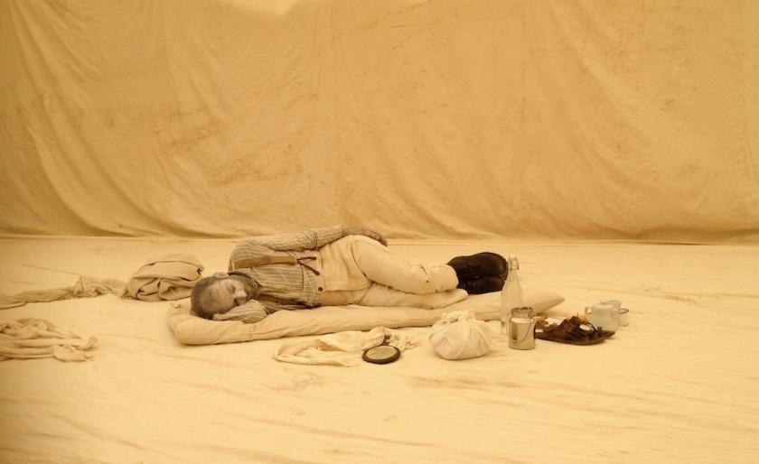 Meanwhile, a short trip to the Whitworth Gallery presents Indian artist Nikhil Chopra in the middle of a 65-hour continuous performance, Coal on Cotton (the gallery will remain open until sunset tonight, with Chopra taking extended naps in front of visitors in a big cotton tent which feels like a sauna). The artist is taking on various personas –The Mill Worker, The Farmer, The Boss – in his “exploration of the historical cotton trade between Manchester and Mumbai”. As far as I could see, The Mill Worker gets a lot of sleep (main picture). With his chalked-up face it could be a "homage" to Joseph Beuys. Or Tilda Swinton, most recently seen sleeping at MOMA.