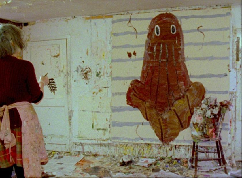 Filmmaker Ben Rivers is drawn to outsiders and misfits, people who prefer solitude over society and live in shacks in the sticks rather than bungalows in the suburbs. Living in the Kent cottage she shared with her painter husband Roy Oxlade until his death last year, Rose Wylie hardly fits the bill; yet one can see why Rivers was drawn to her. In his disarming film, What Means Something, 2015 (main picture) she comes across as a genuine eccentric, ploughing her own furrow. Despite receiving scant attention, she persisted in painting large-scale images of people surrounded by cryptic comments, in a deceptively simple style like a cross between Jean-Michel Basquiat and Philip Guston’s cartoon-inspired late paintings.