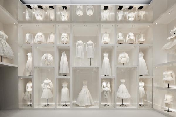 The heart of the V&A’s sumptuous Christian Dior: Designer of Dreams is a room dedicated to the workmanship of the fashion house’s ateliers. A mirrored ceiling reflects dazzling strip-lit cases which hold the ghosts of ballgowns, slips and jackets — adjusted prototypes, haute couture maquettes — made in white toile by the seamstresses of Dior’s Paris studios before they begin work on the final garment. The pieces tower overhead, stacked in an apparently infinite iteration of shoulders, waists and necklines, cuffs. Over here’s a grouping with jester fastenings, over there, jerkin variations. At ground level, a gown from 2007 which swept along the runway impudently crystal-spangled and sashed in royal blue is stripped to pale ligature.