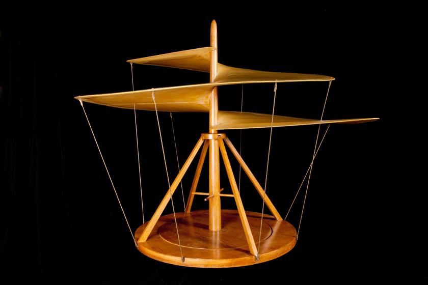Leonardo was a superb draughtsman, and the model-makers have done him proud. My favourite, the aerial screw (main picture) is, close-up, breathtakingly beautiful. It is claimed as the first model for a helicopter, but (as with most of his ideas) Leonardo never actually built or tested it, although his notes and drawings are precise enough to indicate how the device would operate; modern scientists, however, say it would never get off the ground.