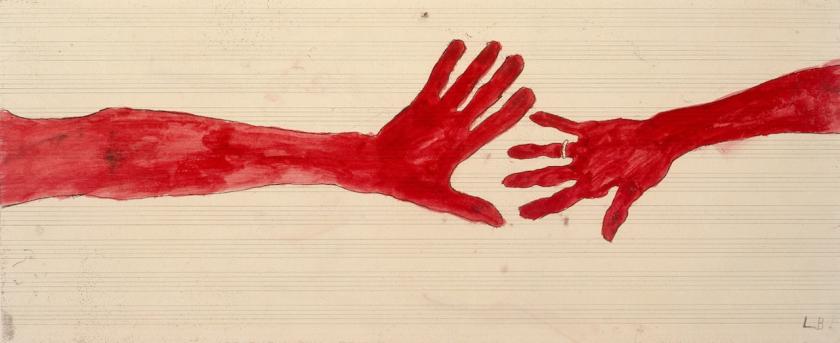 On a wall at the very heart of the exhibition hang 16 large sketchy etchings arranged in rows four by four. These make up one of her last major works, A L’Infini, 2008-9. They intrigue like vast Rorschach blots. In the light of the biographical details the exhibition has provided up to that point, the viewer begins to interpret and see things in the images – are they woollen threads and needles being pulled through the template of a tapestry, blood surging through veins or emptying from them, a map of twisting roads, river and streets, random knots, sperm, sections of electric wires, tree branches in the wind? Red is the predominant colour. Whatever they were intended to be, their meanderings carry a charge of energy and vital movement. Did Louise Bourgeois want them like the rest of her art to be a Rorschach test? A way of encouraging self-reflection and starting a conversation about a person's internal world?