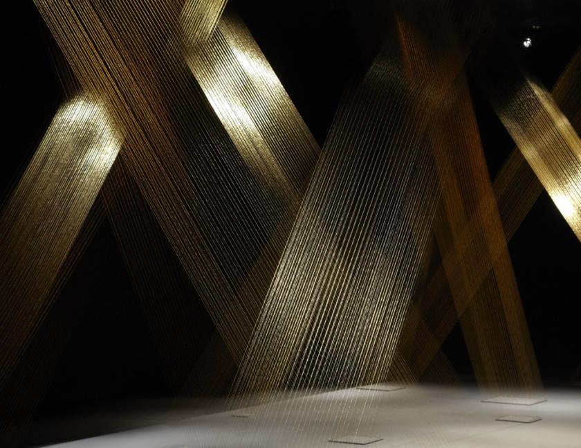 As you walk around them, the threads visually overlap to produce shimmering moiré patterns. The structure is extremely simple, but rather than diminishing its impact, figuring out how it is done only enhances its mesmeric effect. The installation is titled Web and weaving threads of light through space is a recurring theme in the work of Brazilian artist Lygia Pape, who died in 2004 aged 77, just as she was gaining the international recognition she deserved.