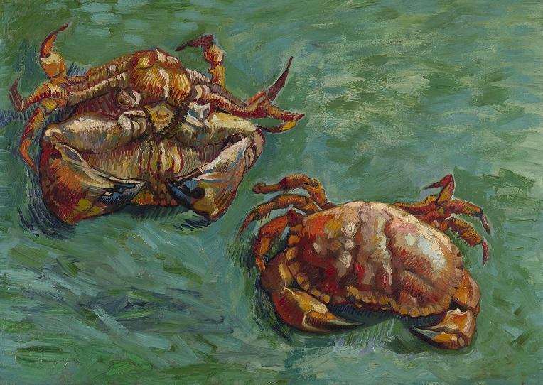 If you were hoping to be blinded with science, only disappointment awaits. Aside from some photographs showing cross sections of paint layers and occasional little pots of pigment, the science is often elusive and always unsatisfactory. Where it exists, it is descriptive rather than explanatory, and betrays the uneasy relationship between science and art and an uncertainty about how to communicate scientific ideas to the public. A section on colour theory presents an array of paintings that exploit the effects of juxtaposing certain colours, with Van Gogh’s Two Crabs, 1889, (main picture) and Carlo Crivelli’s Saints Peter and Paul, probably 1470s, a fine sight in a room devoted to the stunning results achieved by using combinations of complementary and primary colours.