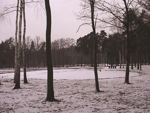 In the first gallery four huge video screens occupy each of the four walls. The same scene, of snow, and low huts, and branches of trees, spin before you. Each of the screens play the same loopedfootage, though not simultaneously. Though there is no explanatory text on the walls to guide the casual visitor, the footage shows the bleak winter landscape of Majdanek camp, one of the first camps to be liberated. Balka took the footage while literally spinning round with a handheld camera. Standing in the middle of the room one quickly feels dizziness, and then a rising sense of nausea. Perhaps Balka’s suggestion is that we can never entirely capture and grasp the horrors of what happened beyond the barbed wire fence. Or perhaps that nausea is the only appropriate response.