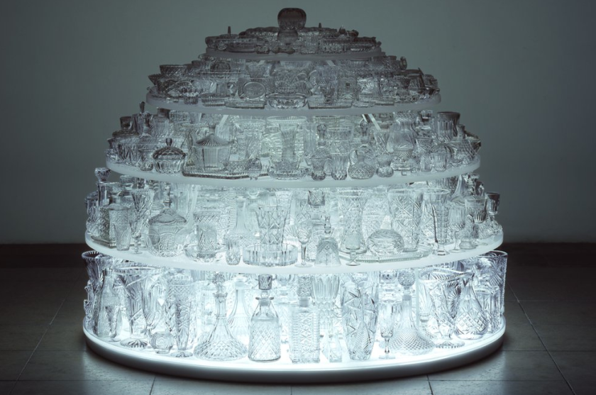 The best piece in the show is a human intervention in the human world. For Igloo (pictured top), Stuart Haygarth has assembled hundreds of items of clear crystal glassware, mostly the sort of patterned and etched Victoriana/Edwardiana you find in your grandparents' house. There are decanters with that familiar rough raised diamond cut, vases, candy dishes, jam pots, platters, wineglasses - domestic glass from a bygone era. Instead of making a statement solely about kitsch, Haygarth has arranged them on tiers of perspex and lit them from within, so their coldness yet beauty are enhanced. By creating a futuristic sculpture with found antiques, Haygarth brings out the missing humans. These relics simultaneously hide and reveal their owners' lives, humane even in their scientific set-up.