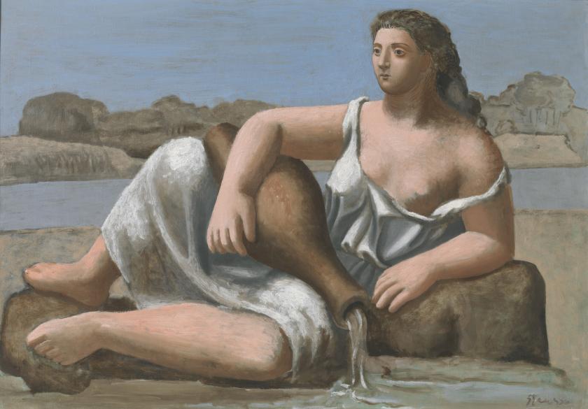 We are so accustomed to the timidity and reticence that for much of the past century characterised both British art and British public collecting that the genuine surprise is how several British artists more than hold their own. Henry Moore met Picasso in Paris with a group of leading surrealists, invited to the studio to watch Picasso at work on Guernica. But the influence was acknowledged from the 1920s, and the terrific selection on view pits Moore’s magnificent Reclining Figure, 1936 (pictured below), carved in elmwood, against an almost identical pose in Picasso’s classicised La Source of 1921 (see main image).