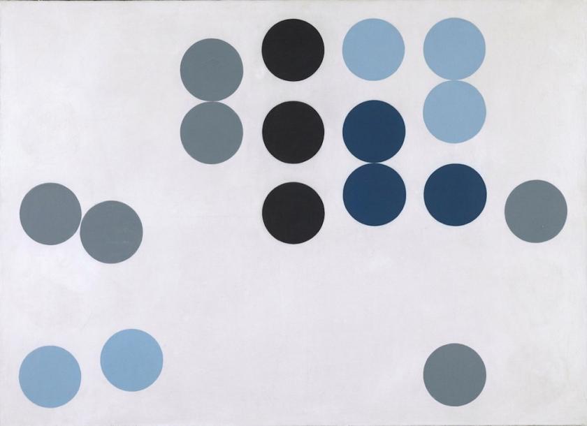 Sophie Taeuber-Arp gave her work titles like Movement of Lines, yet there’s nothing dull about her drawings and paintings. In her hands, the simplest compositions sizzle with tension and dance with implied motion. Animated Circles 1934 (main picture), consists of blue, grey and black circles on a white ground. The off-kilter design makes them appear to shuffle, nudge, float or bounce; you feel light-hearted and light-headed just looking at them.
