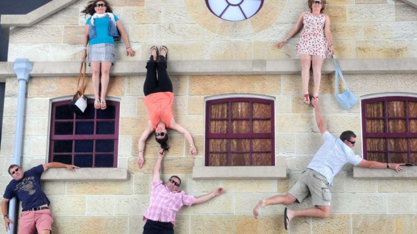 Down in Darling Harbour, surrounded by the po-mo kitsch architecture of this odd 1980s development, Leandro Erlich's Merchant Store offers more visceral and certainly uplifting thrills. Who can fail to be excited about climbing up a building, like Spiderman? Well, crawling along a building on the floor actually, for Erlich's art is all smoke and mirrors – one giant one, tilted, means that a visual illusion is created which everyone seems to love. Accessible art doesn't come more enjoyable than this and the trick is a similar one to that which Erlich pulled off with Dalston House in East London earlier this year. But as with Black Diggers and Chance, history weighs heavy – Erlich could've chosen any building in Sydney but he chose the 19th-century Union Bond Store in George Street as the basis for his recreation, which means that colonialism seems to just keep coming back and biting festival organisers, and Sydneysiders in general, on the arse, no matter how much they may dream of forgetting and looking forward.