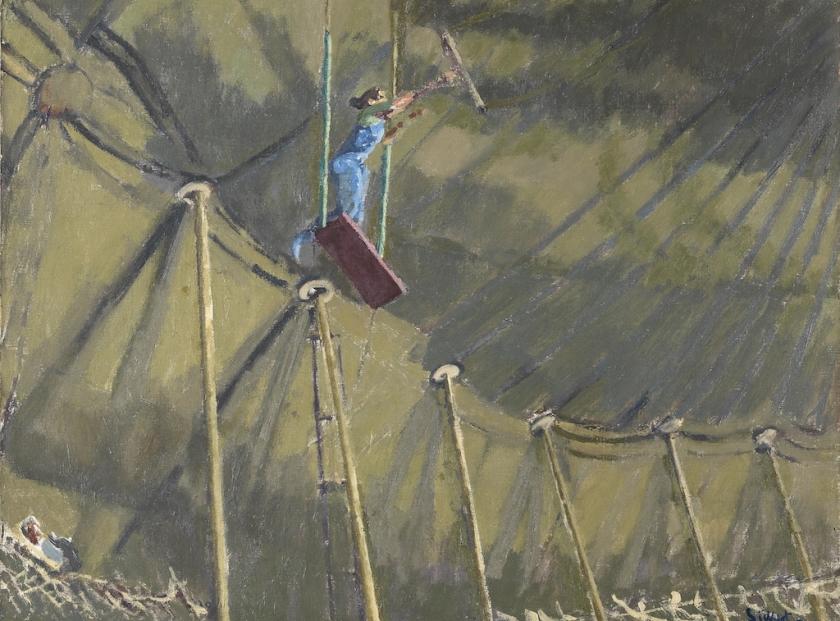 His friend and mentor Edgar Degas was a key influence in his choice of subject matter and also in his habit of working from sketches or, later on, from photographs. The odd perspective of The Trapeze, 1920 (main picture) pays homage to Degas’ Mlle Lala at the Cirque Fernando, 1879. In Degas’ painting, you can almost hear audience members catch their breath as they watch the twirling Lala hang by her teeth, but Sickert’s trapeze artist is dwarfed by the dome of the big top. Seemingly lost and lonely, she might as well be performing to an empty house.