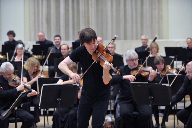 A piece of new music followed: Overture for Violin and Orchestra, by Edgar Meyer (pictured above by Jim McGuire), Bell’s old friend from Indiana days and a virtuoso double-bass player. Meyer wrote the work for Bell and the Academy, who premiered it in the US last year and now present it in each concert on this tour here. It’s quite brief, beginning in lyrical and engaging vein and fulfilling Meyer’s stated intention “to establish trust and to provoke interest” as it goes on. The busy and undulating triplets at the outset, with their syncopations, stimulate feelings of controlled energy, and the repeated pedal points, as the music moves into jazzier idioms, build momentum. It gets to a clear climax and keeps reminding you of themes you’ve heard before: in short, an expertly crafted piece of writing, which went down extremely well. Bell has spoken about the “bluegrass” and Nashville roots of Meyer’s music-making, which might not be an obvious commendation to a UK audience, but the piece has plenty more virtues than those.