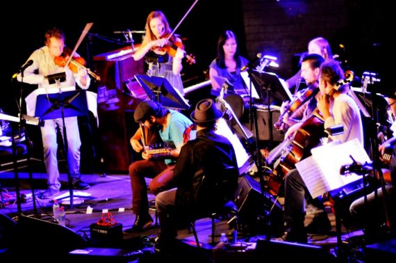 But Greenwood didn’t abandon his pop roots altogether during his time in Sydney. Audience members at a gig for Tognetti’s group-within-a-group ACO Underground (pictured left) got a surprise when Greenwood turned up one night to perform Steve Reich’s Electric Counterpoint with the band. “We’re a pretty elite group,” explains Tognetti. “We’ve got the lead guitar and songwriter from Midnight Oil and Brian Ritchie from the Violent Femmes. We like to mix up the venues we play, and this one was a properly dirty nightclub – Le Poisson Rouge is upmarket by comparison. Jonny loved the atmosphere, and we played a bunch of his stuff as well as some Shostakovich, Paganinni and a Kurt Cobain song.”