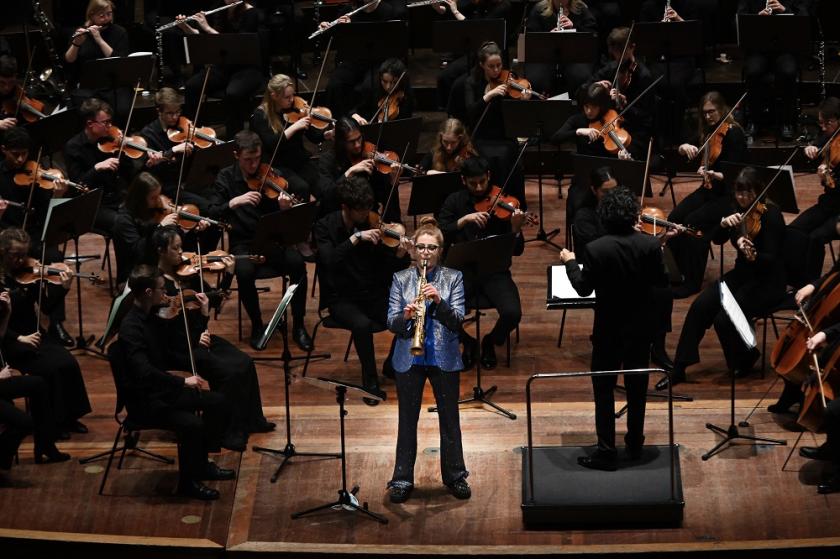 Although somewhat clumsily expressed in the composer’s programme note, the concerto falls into three movements, “Flare”, “Garsdale” and “Rant!”, each with its own character. The first conveys a vivid sense of urgency, with African rhythms and at several points the entire orchestra clapping in unison. The soloist gives the impression of running in dizzy circles above and around a pulsating harmonic backcloth, which comes to an abrupt halt at the end of the movement as though falling off a cliff edge. There’s a brief respite in the slow movement that follows, before the final “Rant!” bounds into view with a distinct folk-like character, the soloist imitating the querulous sound of northern English bagpipes. A big tune (“The Ulverston Volunteers”) builds slowly into the orchestral fabric as the concerto pirouettes to its exultant conclusion. Words don’t really do this piece justice, but I can confidently say it was one of the most enjoyable and imaginative pieces of new music I have heard for a long time.