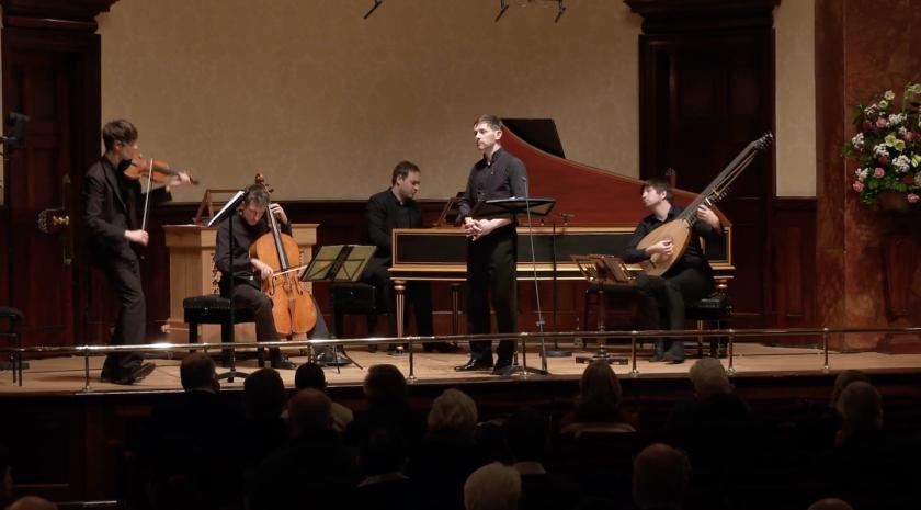 The Arcangelo players did much more that support the headline voice. Many of the Brockes arias become virtual duets with an instrument given its obbligato showcase: Truscott’s violin [pictured above] in Künft'ger Zeiten, or Manson’s cello in Süßer Blumen. The wholly instrumental interludes gave them a deserved spell in the limelight. In Geminiani’s F major cello sonata, Manson married Italianate refinement with a more English dance-floor jollity (the composer lived in London and knew Handel.) Truscott’s Handel violin sonata blossomed from its tender adagio entry into a roof-raising, show-off allegro, a sort of West End pastoral that unites the rustic and urbane. Dunford’s lute [pictured below], outstanding all the way through, had its chance to shine alone in Marin Marais’s tranquil, meditative, almost minimalist Les Voix Humaines – a transcript of a viola da gamba piece that itself mimics the organ’s vox humana.