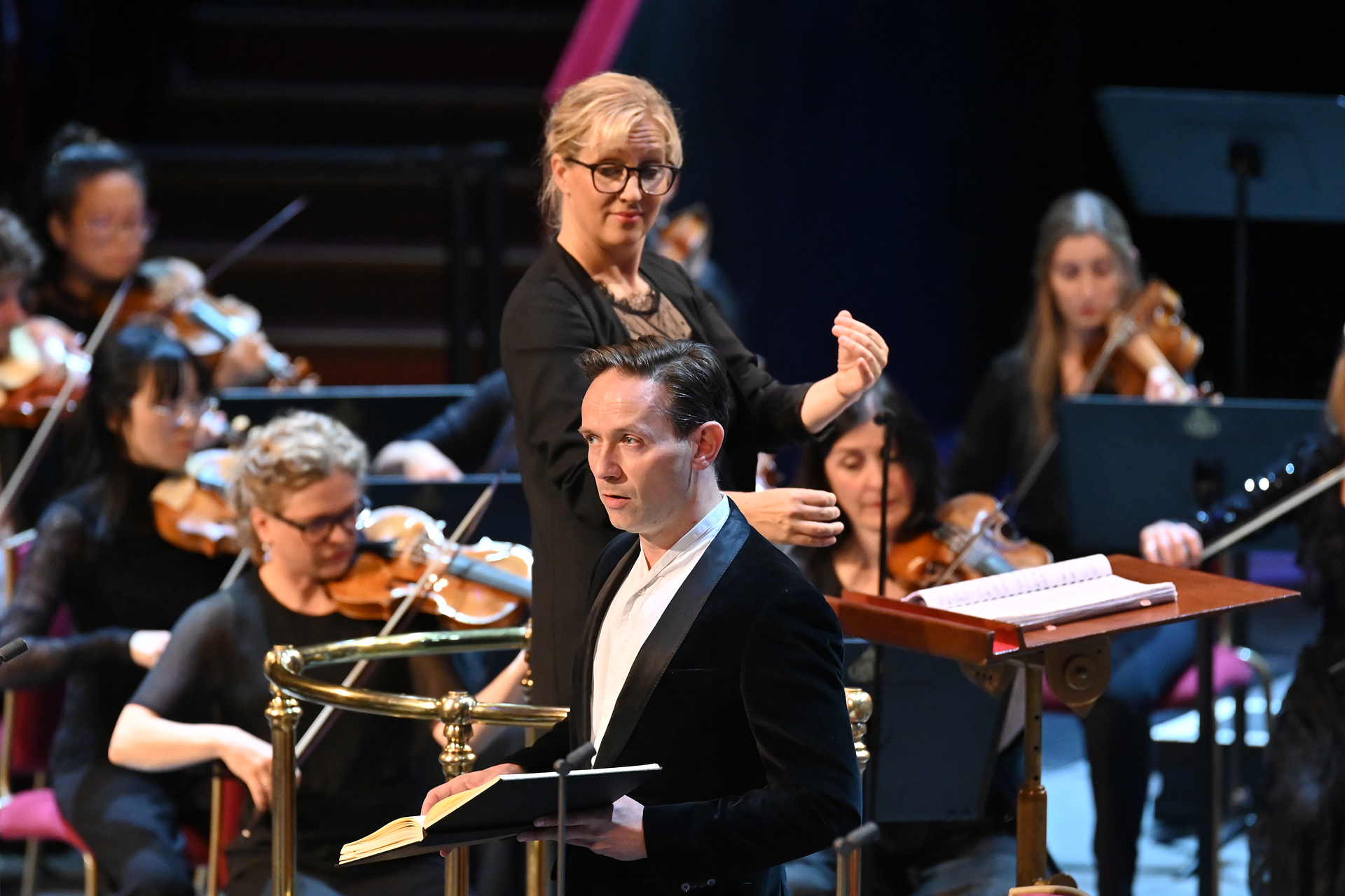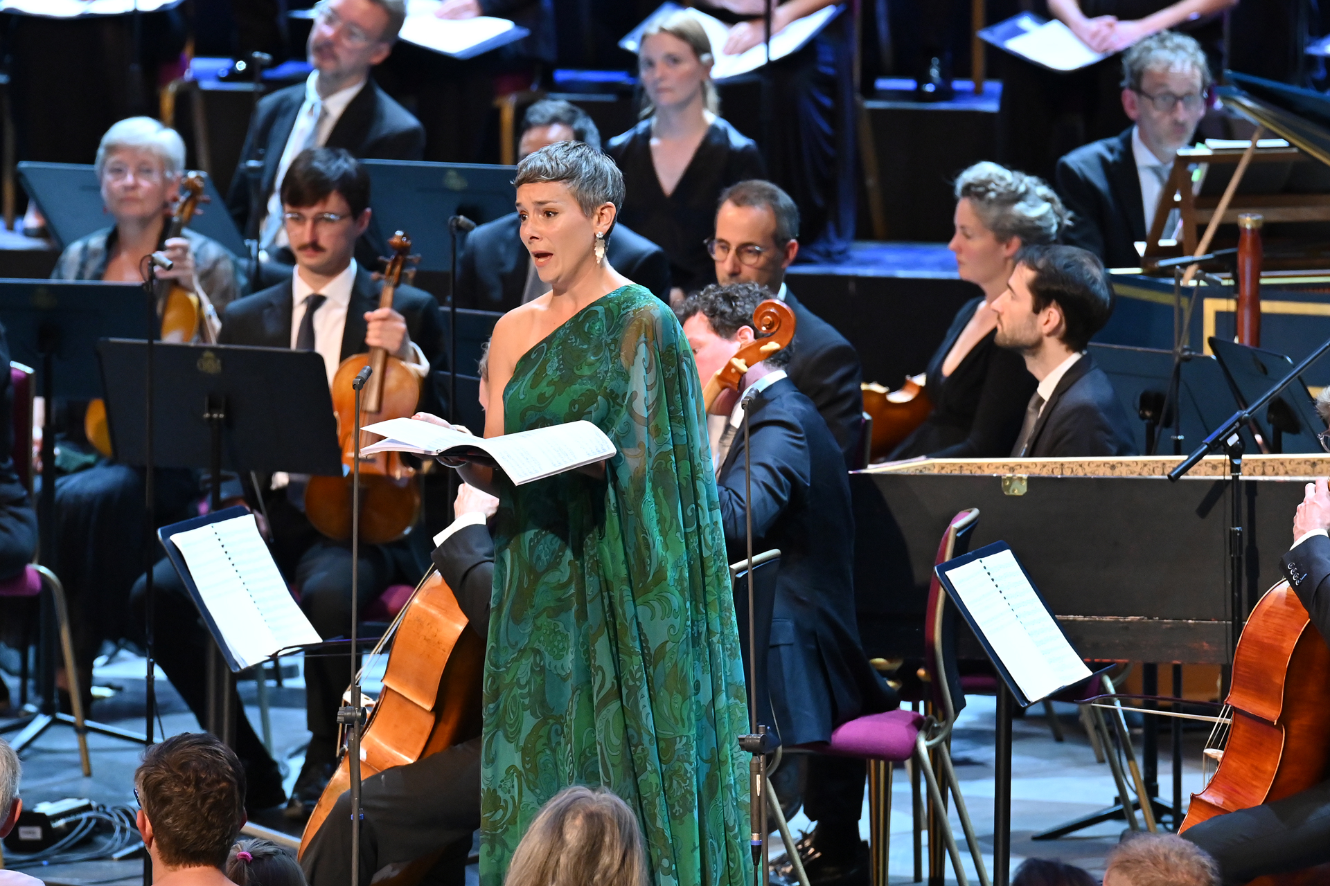 With Sofi Jeannin (pictured above) conducting The English Concert, this Solomon (wisely) had no attempt to stage the oratorio’s music in a fussily intrusive way. In any case, it would would be a big ask to transform the whole pageant-like work into credible music-theatre, as (for instance) has happened with Theodora – written in the following year. So mezzo Wallis Giunta simply changed frocks (into a suitably spangly number) as she moved from “Second Harlot” to Queen of Sheba, while the strategic placing of trumpets, woods and timpani made the most of the multiple thrills that stud Handel’s score. Otherwise, the music – and the singing – supplied drama aplenty.
