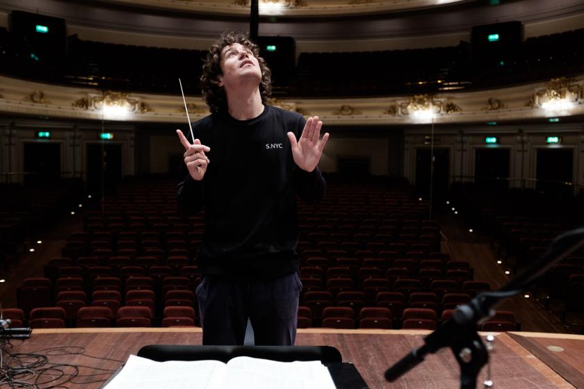It's bad if that comes out academically, that overture. But the idea of the lines is really essential. I love that piece, for me it was the first time yesterday, and a lot of people have either played it a million times or studied it so much at some point in their lives that it's become a piece that doesn't hold so much mystery any more. But (sings lyrical theme), that's a Lied, there's a text somewhere there. And just his use of the triangle, to wait for that final G pedal and it comes in on the dominant pedal, not a tonic resolution, it gives something of expectation, I said, now look, you've got to play it in a way that all your Christmases have come at once. There has to be rusty jangle. It's lovely talking to the percussionists – they're not members of the orchestra but I always have the same team with me here, and it's lovely that they know when it's to do with cymbal sound or the type of bass drum, the skin, they'll always bring three or four options so we can find the right type of rust.
