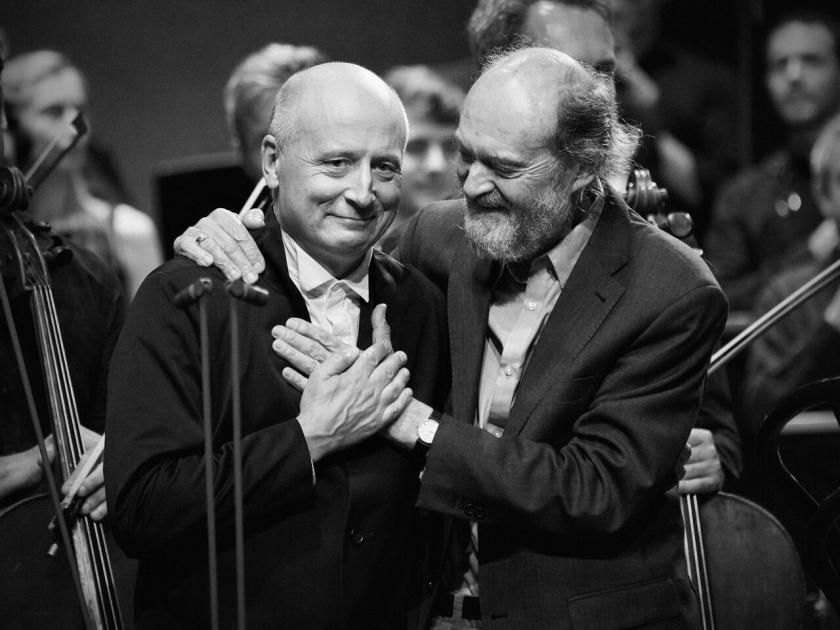 We also got a brief taste of Järvi senior’s undiminished panache conducting the young Estonians in a prizewinning entry by Urmas Lattikas for Estonia 100’s march competition, before generously handing the baton to the composer (the two pictured above).