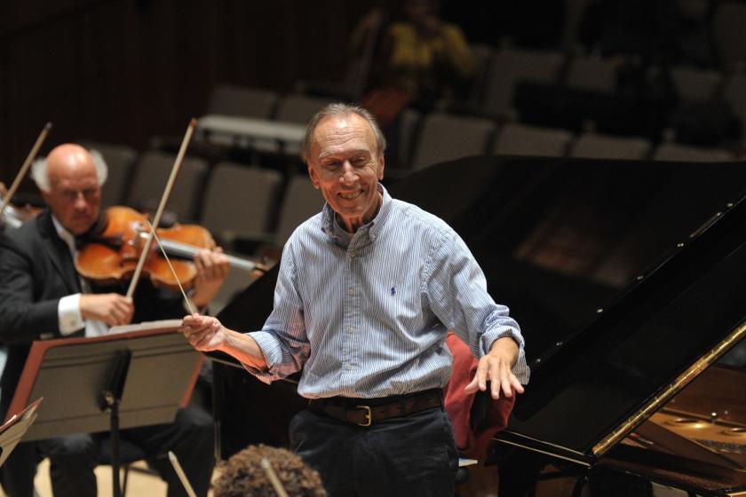 Admittedly the lack of muscle to the left-hand grabs and the ponderous speeds, particularly in the final movement, weren't ideal. (I wouldn't want my Schumann to come served only this way.) But if you just succumbed to Uchida-land - such an attractively liminal world ultimately - one could go home very satisfied. The numerous beautiful duets she developed with the wind soloists of the Lucerne Festival Orchestra (including the characterful clarinet of Stefan Schilling) was worth listening to alone. (Pictured below: Uchida and Abbado take the audience's applause)