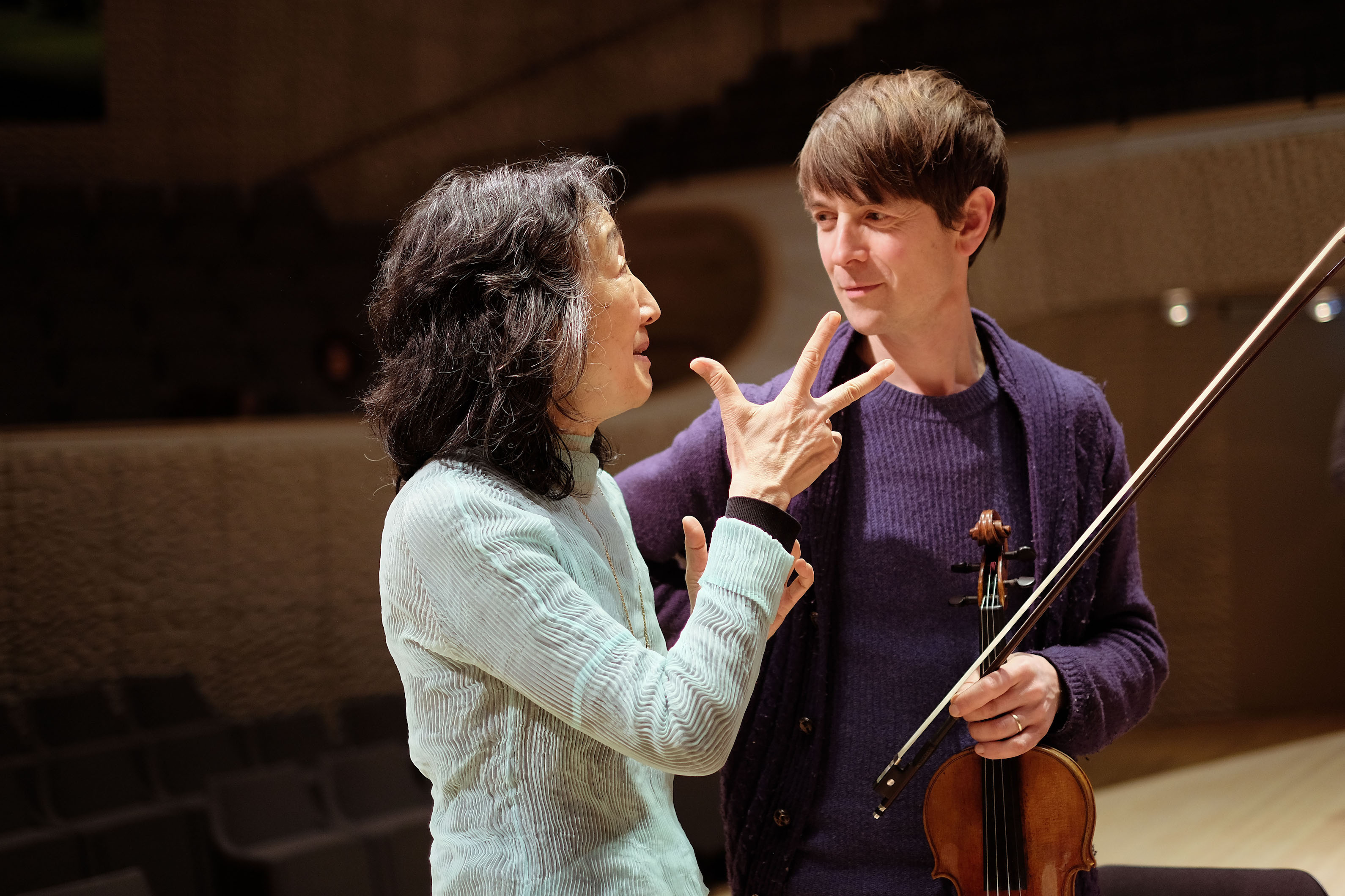 Something completely different, Berg’s Lyric Suite – or rather, the three movements that he arranged for string ensemble – allowed Truscott (pictured above with Mitsuko Uchida by Geoffroy Schied) and his colleagues to cultivate a darker but no less compelling tone. Their combination of fervour and finesse brought to mind the strings of much more venerable bands – the MCO itself dates only from 1997. They stood up for this soaring but anguished heart-to-heart. In it Berg, supposedly an apostle of austere musical abstraction, coded an unhappy love with all the confessional intensity – albeit disguised – of an earlier, more romantic, age. Berg’s passionate serialism (not a paradox in this case) calls for an uncommon combination of intimacy and lucidity.