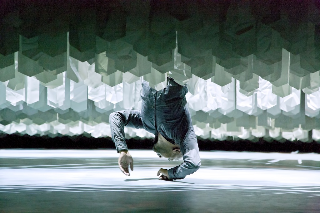 Last night the piece ended six minutes early. Banks of curtains evoking the tall grass recalled by his father swish in the wind before rising and falling. Taking off his western shirt, Khan crawls through them and dons the kurta worn by Bangladeshi men, a sign that finally he has embraced his origins and reached some kind of closure. At this point the curtains are meant to rise, but a technical hitch brought them to a grinding halt at floor level. Akram Khan’s apology was greeted with a standing ovation; it didn’t matter that the theatrical spell had been broken, because we had already accompanied him on an amazing journey full of visual surprises and delights.