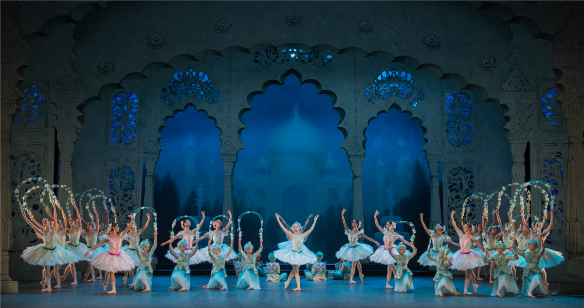Little of the latter is either inspired or memorable, but it is cheerful, and constant. The men throw themselves into grands jétés and barrel turns; the women hop and flutter along with brisés and cabrioles, and there is barely an adagio moment in Adolphe Adam's music, much of which is barrel-organ worthy (though sometimes a little too ploddingly so). The "oriental" costumes are rather a hoot – saris, fezes, Caucasian embroidery and belly dancer jingles jostle for space with tutus—but are also rather good; I particularly liked the pirates’ little red embroidered waistcoats and the various turquoise and diamanté outfits worn by Alina Cojocaru. The harem dream sequence (in which a podgy pasha smokes the strong stuff and imagines his ideal pleasure garden) is what passes for a white act in Le Corsaire, but is in fact mint-coloured, and full of polka and pas de chat. It is a long way from the opium dream in Bayadère which gives rise to the serenely perfect Kingdom of the Shades, but it sure is pretty (pictured above).