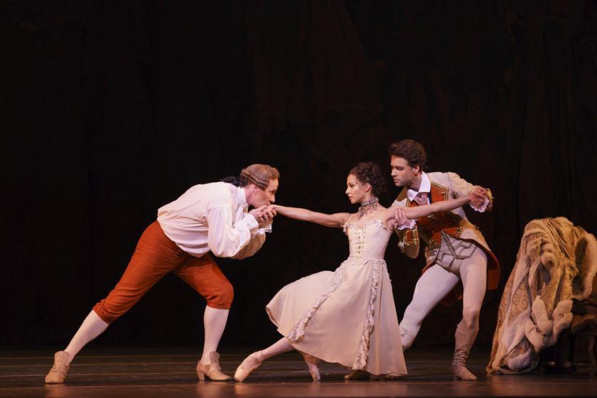 Light and seemingly invertebrate, this Manon somehow manages to keep to herself even when she's mishandled in two of the three least conventional numbers, musically and dramatically, in the ballet – first in a Pas de trois with her pimping brother (Alexander Campbell, chameleonic) and the Monsieur to whom she's sold (Christopher Saunders), then by a whole cohort of rich patrons in a rather peculiar brothel. Peculiar because it's supposed to be a posh establishment run by the ever-classy Elizabeth McGorian, yet it's populated by the slutty, play-it-for-laughs mopheads left over from the 16th century setting of MacMillan's Romeo and Juliet. Is there just too much voyeuristic "fun" here for the #MeToo era?