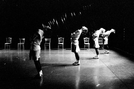 After an hour of increasing tedium, I was suddenly struck by the resemblance of this over-artful set to a school hall at that nadir of teenage girls’ experiences, exam time, and I set off after this thought like a famished greyhound after a stuffed hare. That silver curtain over the little dais, the wooden chairs, the girls’ uniforms, their sleepless night, their head-clutching, was this a dry, subterraneanly witty account of the horror of school-leaving tests? When the performers faced the audience suddenly pulling their gym shirts down to bare their shoulders, with a shifty dull glance, was this a memory of naive 16-year-olds wantonly flashing at their examiner to get a better grade? Were those clenched fists and self-harming gestures that I saw in their relentless, pendulum-swinging final dance? Those gestures aren’t neutral, they’re all girls’ ones - they say, “I can’t sleep”, “my hair’s a mess”, “my right tit’s too small”, “I know I’ll fail”, “did you hear that noise?” “Ow, I’ve got the curse.”