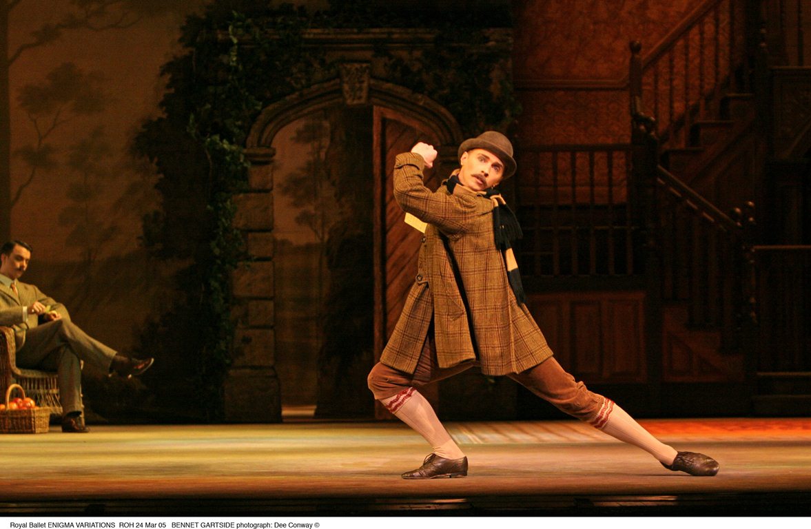 In the trio’s single raised-arm gesture, as the crescendo rises, they encompass love and loss, loneliness and friendship – loneliness in friendship, a desire for what isn’t there matched by gratitude for what is. These are complex, and very grown-up emotions. It is not easy, always, to discern them under Julia Trevelyan Oman’s now dusty-feeling sets, but, in particular, Gartside (pictured left, as William Meath Baker, in the same ballet, photo: Dee Conway) and Arestis have the ability to say much with the bare minimum. A very English talent.