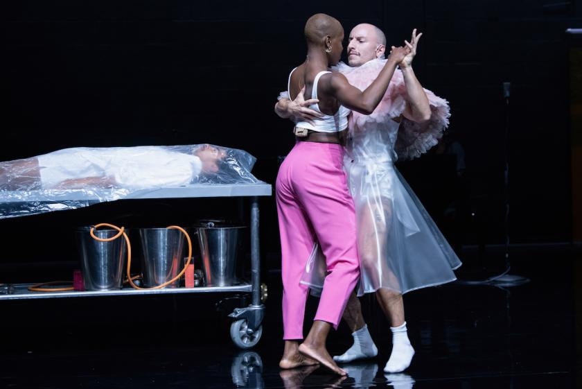 Acknowledging the production of The Nutcracker going on in the main house upstairs, a bank of screens at the side of the Linbury stage are showing excerpts from the ballet in real time, allowing Hades (Jean Daniel Broussé), a covert ballet buff, to conduct an intermittent commentary on Clara’s adventures in the land of sweets. His own realm is a subterranean morgue, and he its chief technician, assisted by his wife Persephone (the magnificent Anna-Kay Gayle), prone to hissy fits of recrimination when reminded of how she came to be stuck in the Underworld and married to Hades.