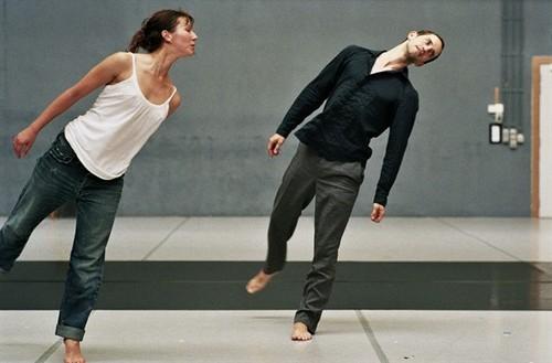 There is some inscrutable measuring business with strands of knitting wool that come straight from the tanztheater manual, but the joy is that so many stories are offered. I suppose the piece is called "Newspaper" for a reason. Three giggling men hop about like mad rabbits (shades of Pina Bausch, De Keersmaeker’s spiritual mother); a couple knot slowly together on the floor and sleep, then he leaves her to wake up alone; a spastic man's trembling, ataxic dance to a smooth, polished fugue is uncomfortably strange, even more when he crashes into another man, who himself becomes ataxic.