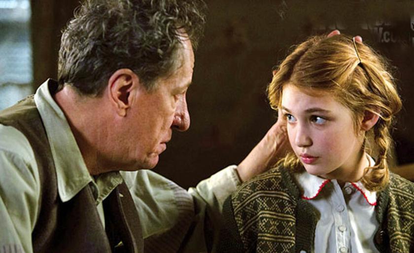 The Hubermanns are struggling to make ends meet, and have adopted Liesel (luminously played by adolescent Canadian actress Sophie Nélisse) because state funding is available to foster parents. Liesel's mother was a Communist and a fugitive from the Nazis, and the train journey to her new home during which her younger brother dies hints at a litany of privations and horrors to come. Instead the piece unfolds almost as a kind of fairy tale, with National Socialism standing in for giants or dragons, as Liesel is comforted and introduced to the joys of reading and literature by kindly Hans Hubermann (an unimpeachably benign and wrinkly Geoffrey Rush). Emily Watson plays his wife Rosa as overworked, fretful and bad-tempered, which makes her the only vaguely realistic element in the story (Liesel and the Hubermanns, pictured below).