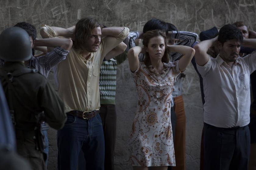 In The Colony Daniel (Daniel Brühl) is an activist graphic designer and photographer based in Chile, making posters and flyers backing socialist president Salvador Allende immediately prior to Pinochet’s 1973 military coup. Daniel's air stewardess girlfriend Lene (Emma Watson) arrives for her stopover and they rekindle their affair, spending their evenings at political rallies.