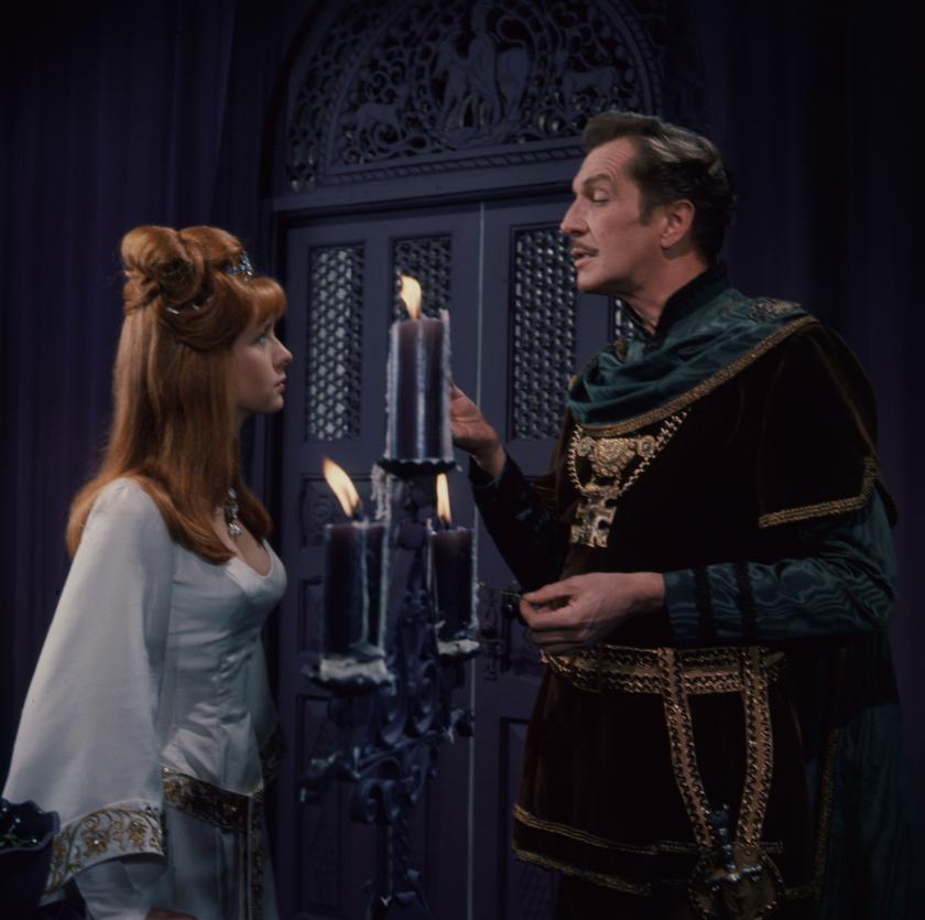 Seventeen-year-old Jane Asher was cast as the peasant protagonist Francesca, a devout Christian perversely chosen by Prospero as his consort for the ball while she’s protesting his incarceration of her father (Nigel Green) and swain (David Weston). Asher’s role wasn’t so much underwritten as barely written at all; her forgiveness of Prospero for killing one of her loved ones and her vague affection for him is mysterious. These moral peculiarities are mercifully balanced by the retribution the dwarf Hop-Toad (as Hop-Frog was renamed and played by little person Skip Martin) exacts from a sly courtier (Patrick Magee) for lusting after his dancer companion Esmeralda – an adult dwarf played by child actor Verina Greenlaw and troublingly dubbed by a woman – and for throwing wine in her face.