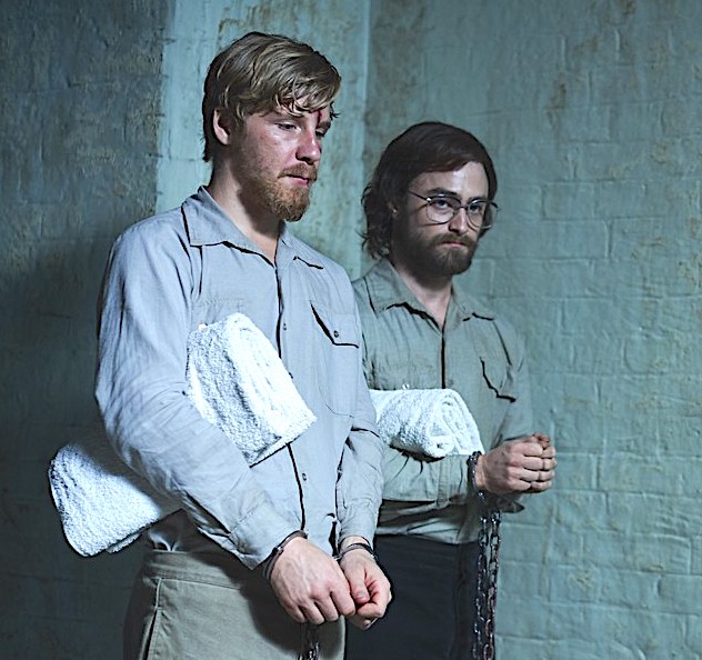 Radcliffe plays Jenkin, who with his fellow African National Congress-supporting comrade Stephen Lee (Daniel Webber) gets arrested for a comically inept stunt where the pair of them put exploding bundles of political leaflets in wastepaper bins. Apparently it didn’t even occur to them to run away after they’d done it, and within the twinkling of an eye the outraged judiciary had the pair despatched to Pretoria Central Prison (12 years for Jenkin, eight for Lee).