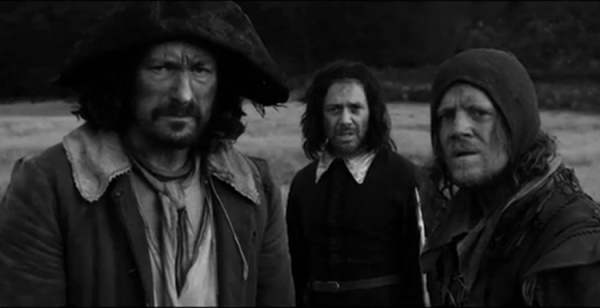 Four films in, the director’s peculiar strengths are becoming clear. Some of Down Terrace’s deadpan dialogue seeps into Sightseers star Richard Glover’s asides here as he plays a sort of holy fool, but the Mike Leigh comparisons made with that and even Kill List (for the cringing verbal embarrassment, humour and cruelty) aren’t likely to be heard again (Julian Barratt, Shearsmith and Glover pictured below). There’s a morality to Wheatley’s vision, linked to his unflinching depictions of violence, and, with his wife and writing partner Amy Jump, equally unsparing humour. He also has a deep sense of England, and of horror. A Field in England is made from both.