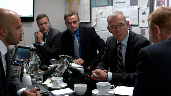 “Do you have an appointment?” Peter (pictured second right) absently asks his wife, before his emotionally mastered life sinks under the weight of the seemingly infinite negotiations. But even as Peter starts to crack, his cool, clean office is contrasted with his hostage employees’ fly-blown quarters. These men are floating off the shore of the corporate world, stuck in a gun-happy, piss-stinking place of brutal physical consequence, only dimly understood in Copenhagen. Lindholm draws no explicit lesson from this. He lets the shit-and-rust-brown light below decks and HQ’s gleaming surfaces state simple, physical facts.
