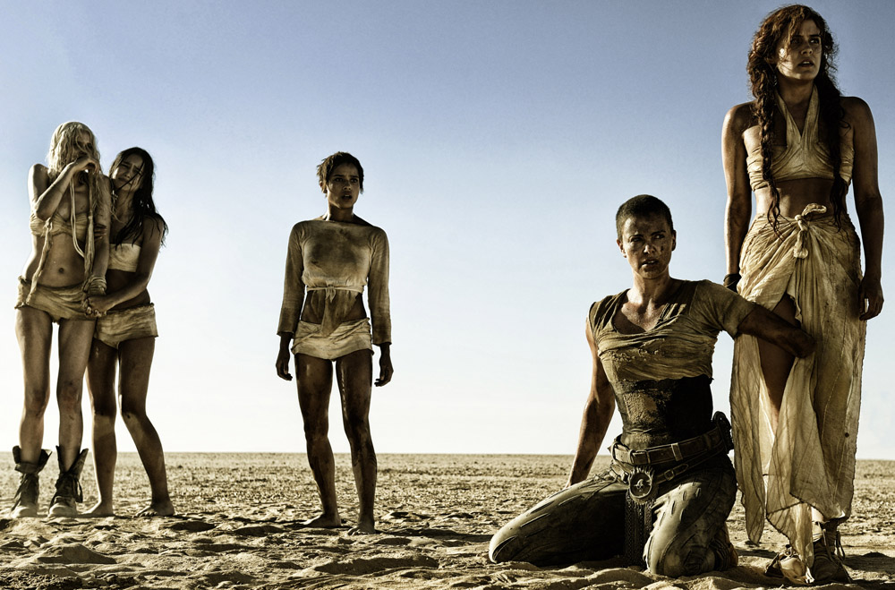 Green issues aside, Fury Road does also tout a sort of feminist agenda, with Theron apparently welcoming the notion of playing an "alpha female" who slugs it out on equal terms with Hardy. Furiosa's homeland, or what remains of it, turns out to be populated by a weatherbeaten matriarchy who wield shotguns like grizzled frontierswomen. Part of Furiosa's mission is to rescue Immortan Joe's harem of oppressed, captive wives (pictured above), though since they turn out to be a bevy of underdressed wet-dream lovelies (including Rosie Huntington-Whiteley, Zoe Kravitz and former Dior model Riley Keough), any "progressive" pretensions seem paper-thin here.