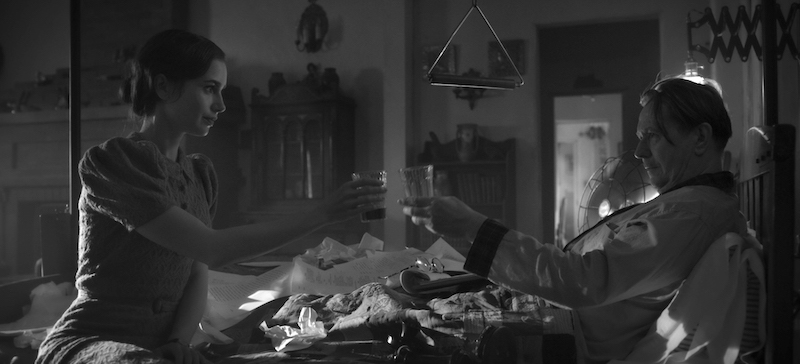 Oldman has always given good drunk, but what’s most notable here is the bantering warmth of the performance, notably alongside his female co-stars: Seyfried, Tuppence Middleton as Mank’s long-suffering, yet equally dry-witted wife Sarah, Lili Collins as the prim English secretary Mrs Alexander, and Monika Gossmann as the nurse Fräulein Frida. One joyous shot of Oldman and Collins has all the prairie romanticism of a John Ford western.