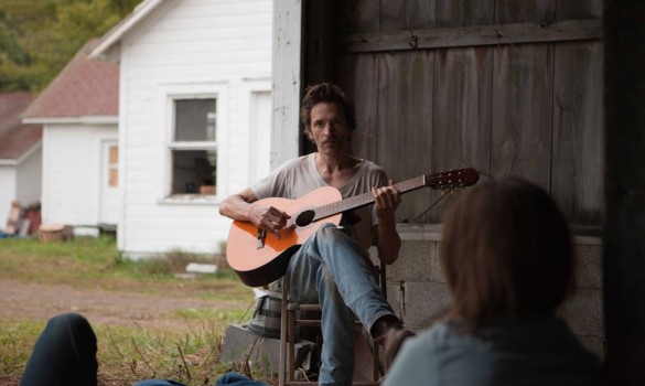As the past comes creeping back, we discover how Martha is renamed Marcy May by the cult’s charismatic leader, Patrick - a reliably formidable John Hawkes, (pictured above right singing Marcy's Song), and schooled with increasing rigidity in what to say and think. The horrors of what is revealed to be not just a patriarchal cult but a brutally misogynist one appear to us eerily muted, but they are no less troubling; the dreamy presentation reflects the dulling of Martha’s perceptions and the skilful muddling of her morality. The women are encouraged to be complicit in crimes against each other, with dead-eyed acceptance they explain away and even elevate what is inarguably sexual abuse. That the violence against these women is not without long-term emotional consequences becomes hideously apparent when one of the older female members lashes out in a crazed, unexpected manner.
